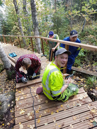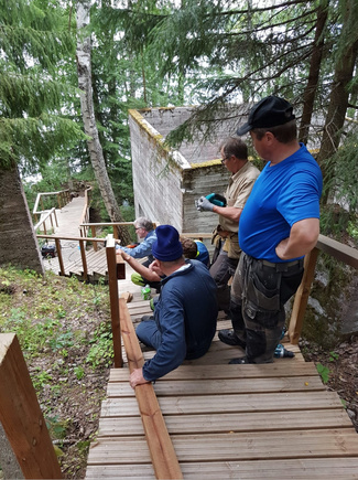 Myllykoskihankkeemme harjannostajaiset pidettiin myllyllä 29.9.2018. Juhlimme vuosien 2016, 2017 ja 2018 rakennustyötä. Olemme rakentaneet talkoilla huussiliiterin, laavun ja kodan sekä runsaasti portaikkoja, joista rakennuksiin johtavat mahdollistavat myös pyörätuolilla liikkumisen.