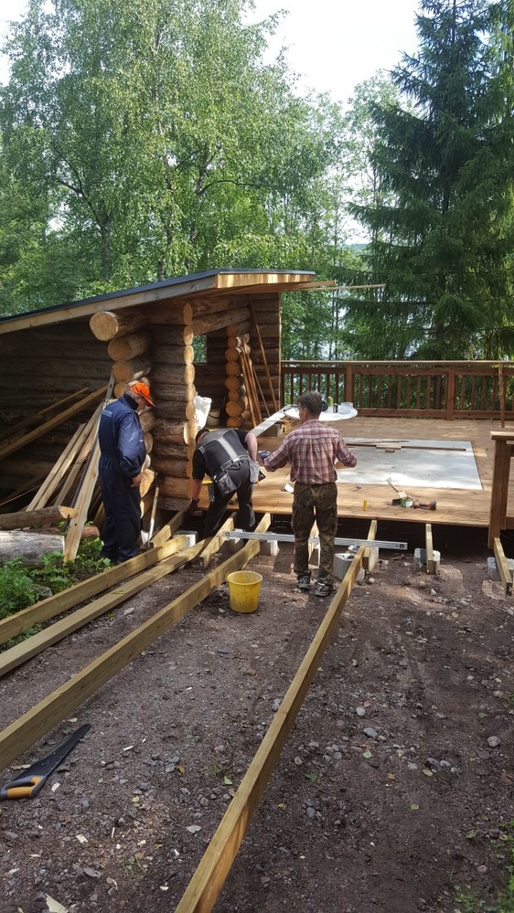 Laituri alkaa valmistumaan. Penkit vielä puuttuu ja siirto paikalleen.